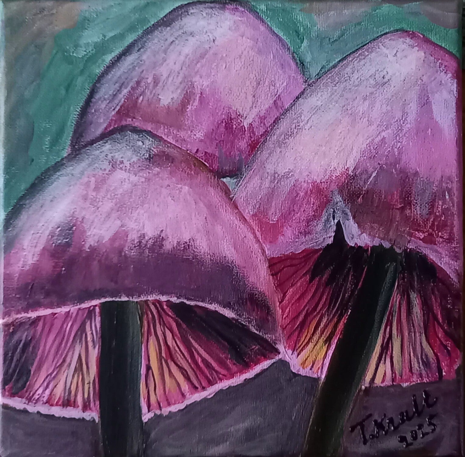 Paddenstoelentijd! Wat bijzonder toch dat paddenstoelen er in het najaar ineens in grote getalen zijn! Ik heb ze speciaal geschilderd in de aanloop naar de atellierroute in Hillegom.